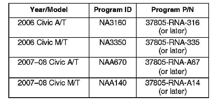Update the PGM-FI software with the HDS. Refer to Service Bulletin 01-023, Updating Control Units/Modules.