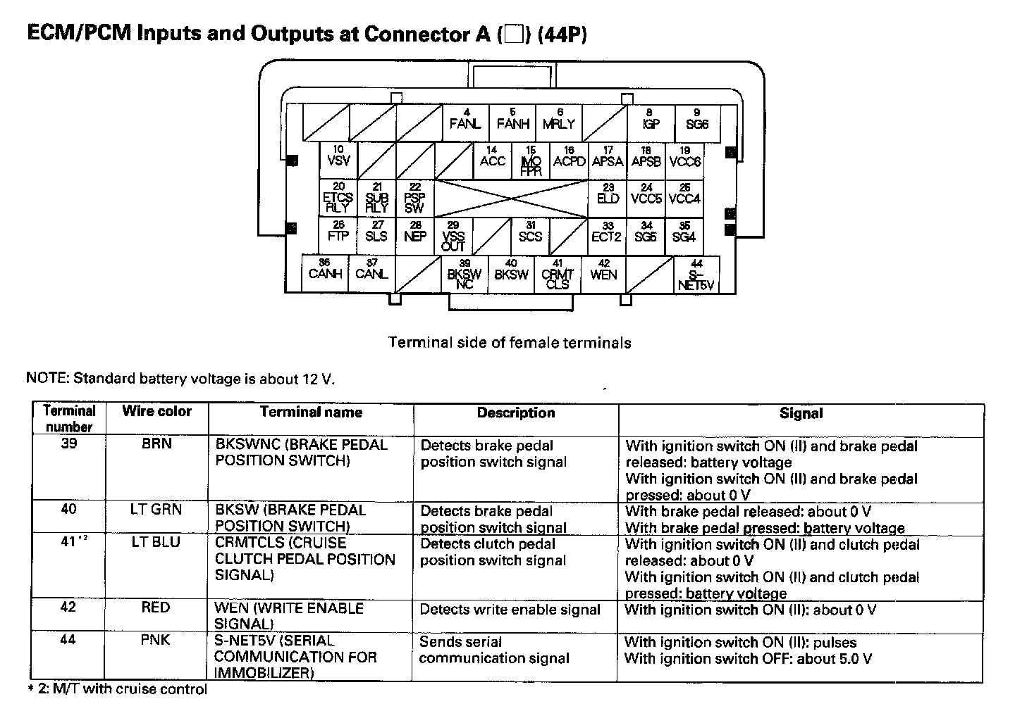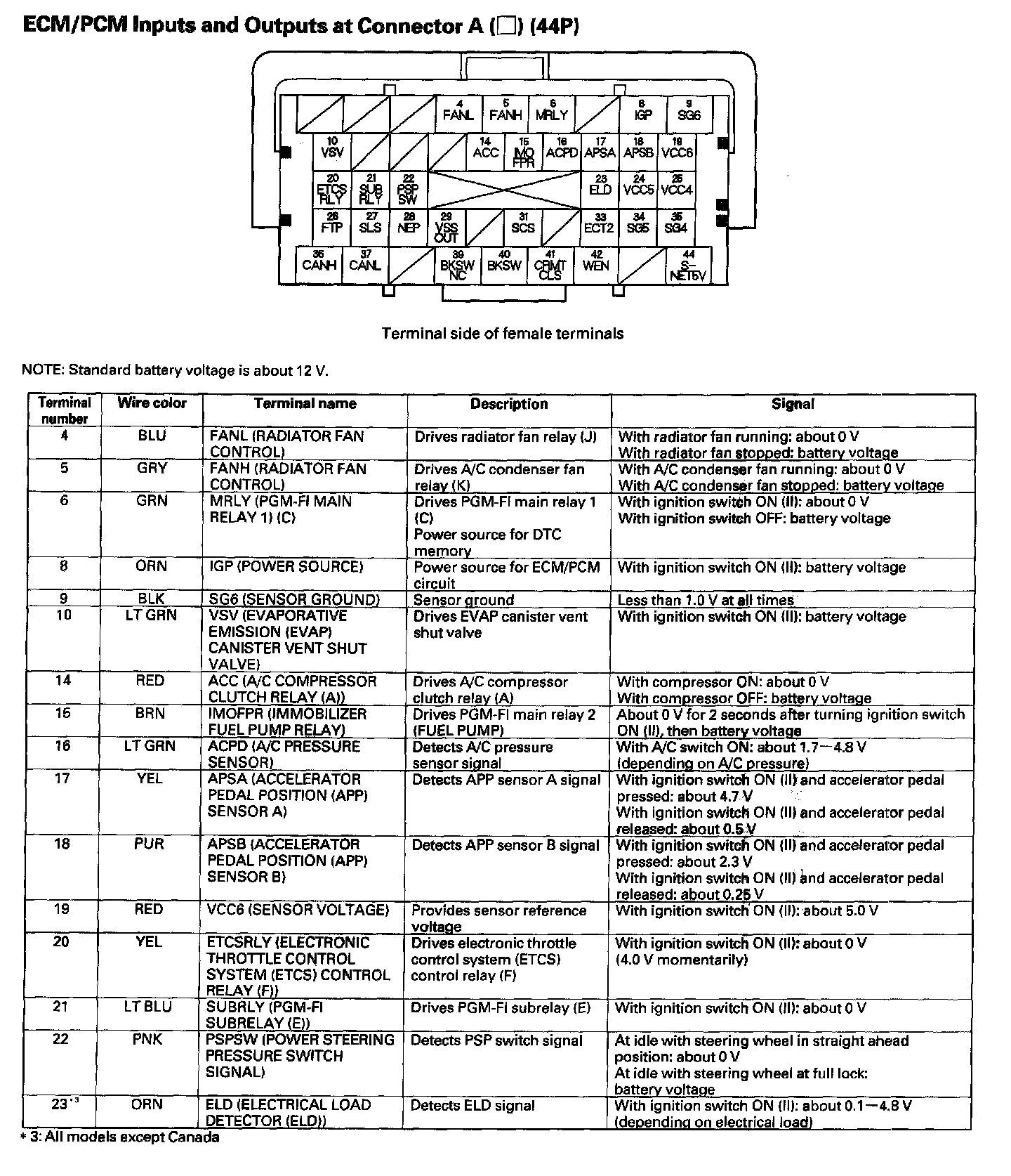 ECM/PCM Inputs And Outputs At Connector A (44P) Part 2: