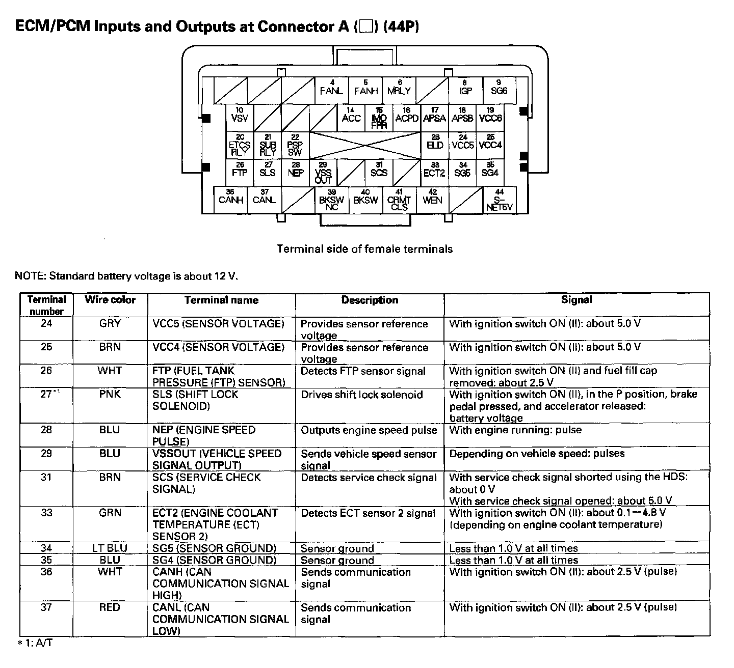 ECM/PCM Inputs And Outputs At Connector A (44P) Part 1: