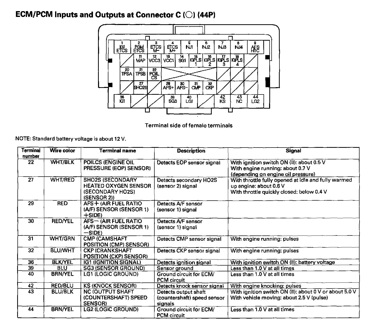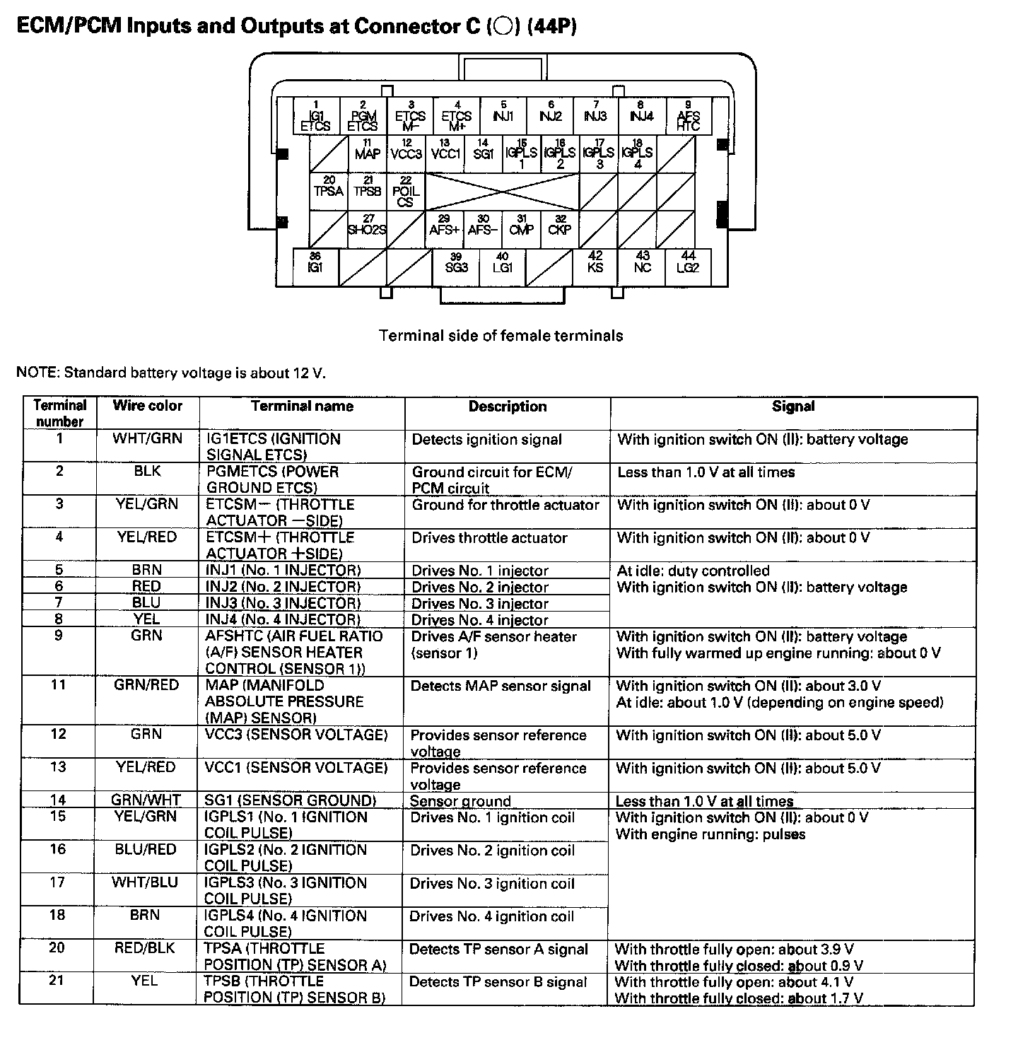 ECM/PCM Inputs And Outputs At Connector C (44P) Part 1: