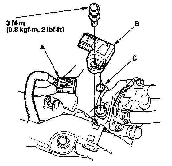 4. Install the sensor in the reverse order of removal with a new O-ring (C).