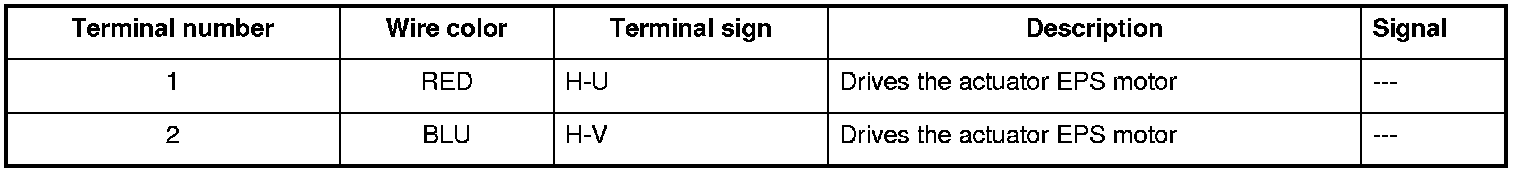 EPS Control Unit Inputs and Outputs for Connector A (2P) (connector disconnected)