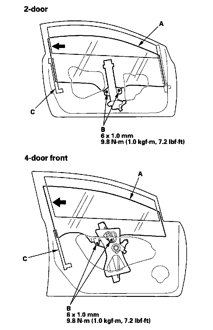 Front and Rear Door Glass AdjustmentNOTE: Check the weatherstrip and glass run channel for damage or deterioration, and replace them if necessary.