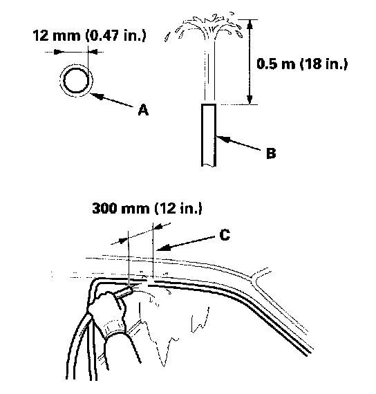 - Use a 12 mm (0.47 in) diameter hose (A).