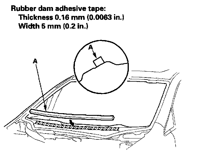 14. Attach the lower rubber dam (A) with body side adhesive tape to the body as shown. Do not peel the glass side adhesive backing.