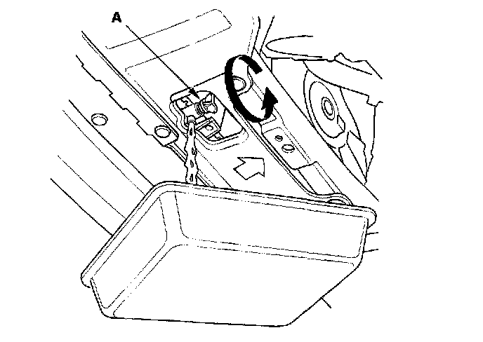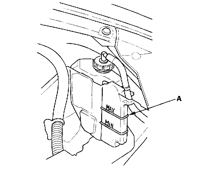 6. Fill the reserve tank to the MAX mark (A) with Honda Long Life Antifreeze/Coolant Type 2 (P/N OL999-9001).