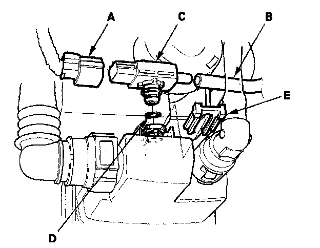 4. Install the sensor in the reverse order of removal with a new O-ring (D) and a new retainer (E).