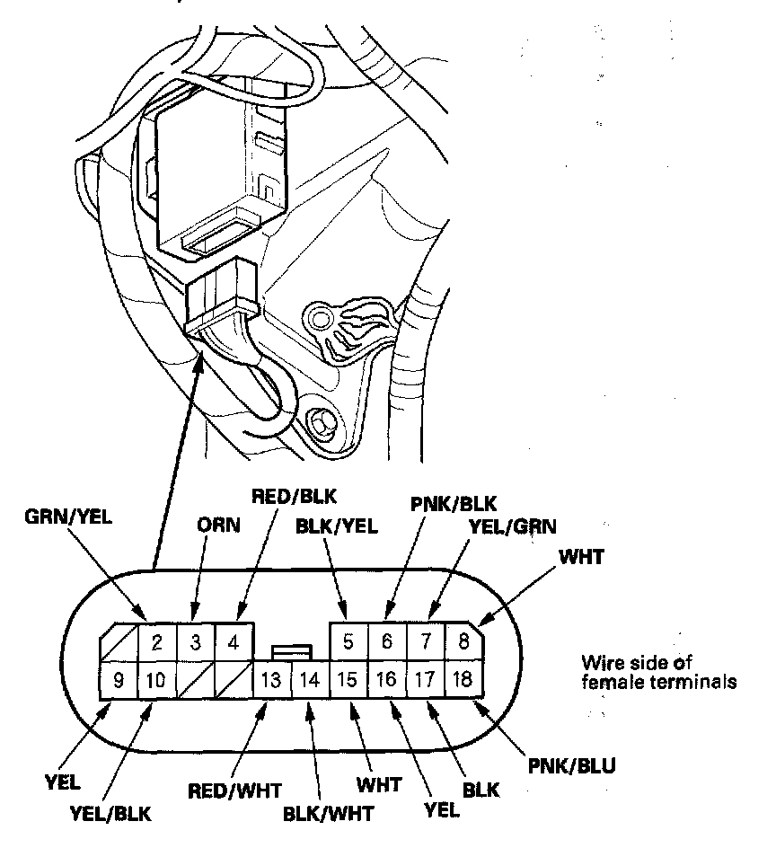 4. Disconnect the 18P connector from the control unit, then make these input tests at the connector.