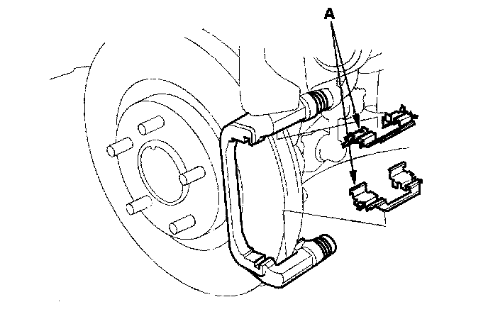 9. Install the pad retainers (A).