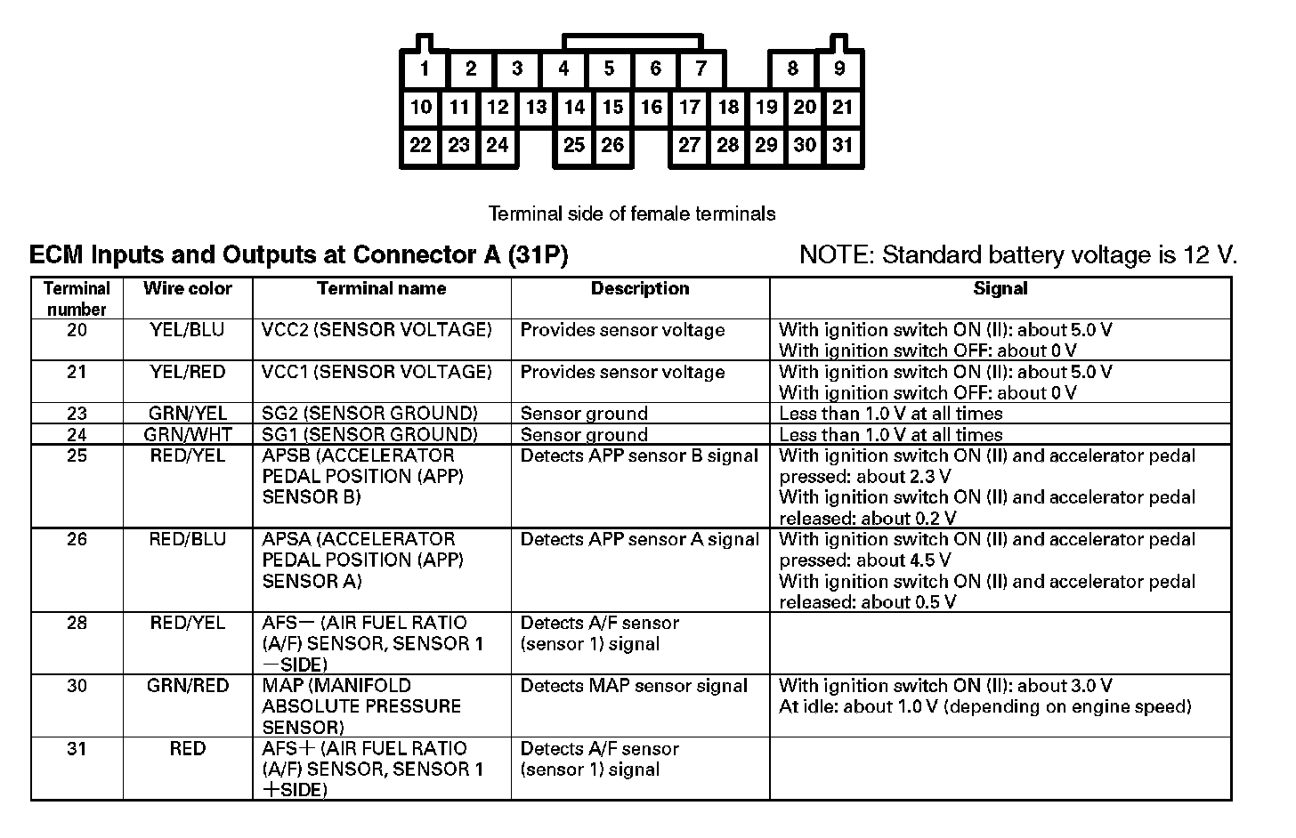 ECM Inputs And Outputs At Connector A (31P) Part 1: