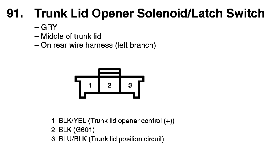 91. Trunk Lid Opener Solenoid/Latch Switch: