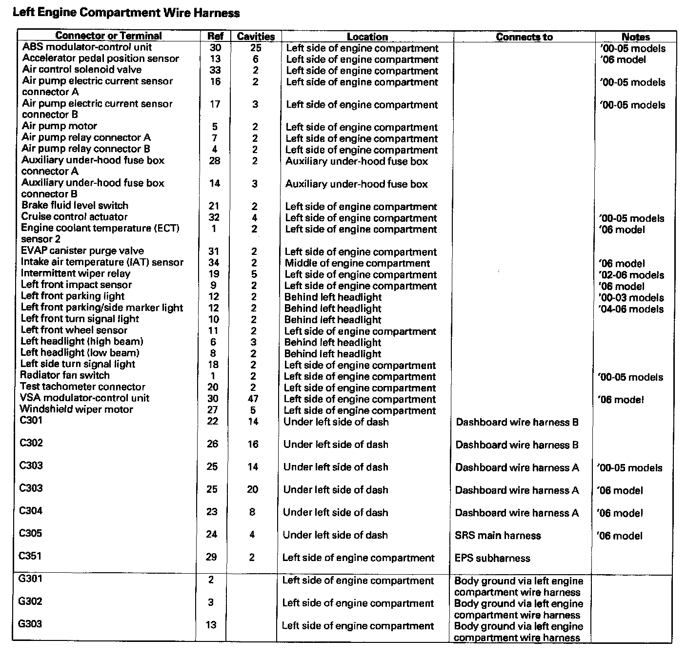Left Engine Compartment Wire Harness: