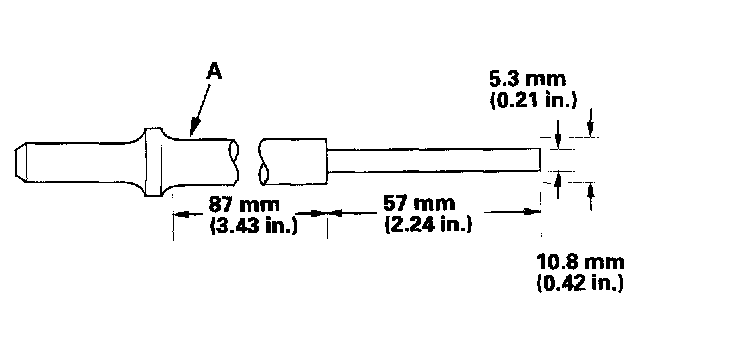 2. As illustrated, use a commercially available air impact valve guide driver (A) modified to fit the diameter of the valve guides. In most cases, the same procedure can be done using the special tool and a conventional hammer.
