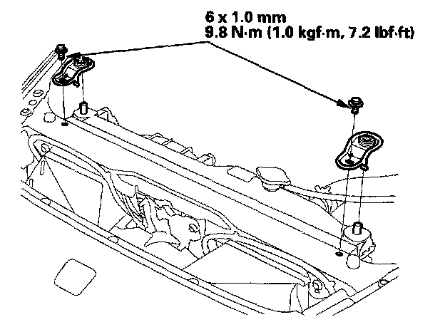 3. Remove the bolts, then remove the upper mount brackets from the radiator.