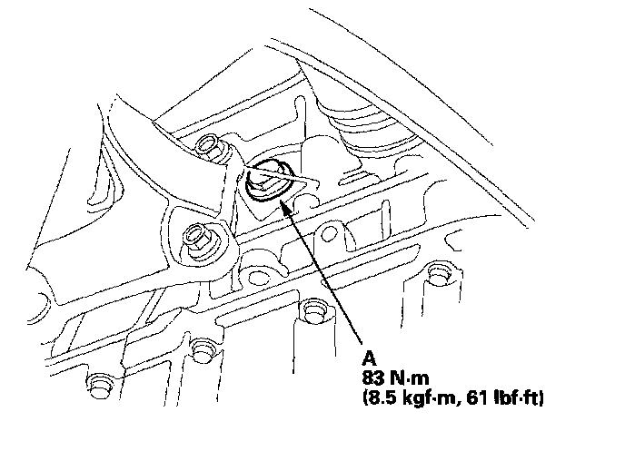 4. Remove the drain bolt (A) from the right side of the engine block.
