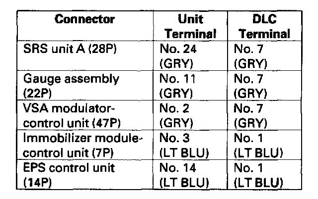 NO - Repair short in the wire between the DLC (DIAG-H) and the EPS control unit or the immobilizer control unit-receiver or the DLC (K-line) and the gauge assembly, the SRS unit, and the VSA modulator-control unit.