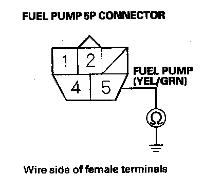 54. Check for continuity between fuel pump 5P connector terminal No. 5 and body ground.