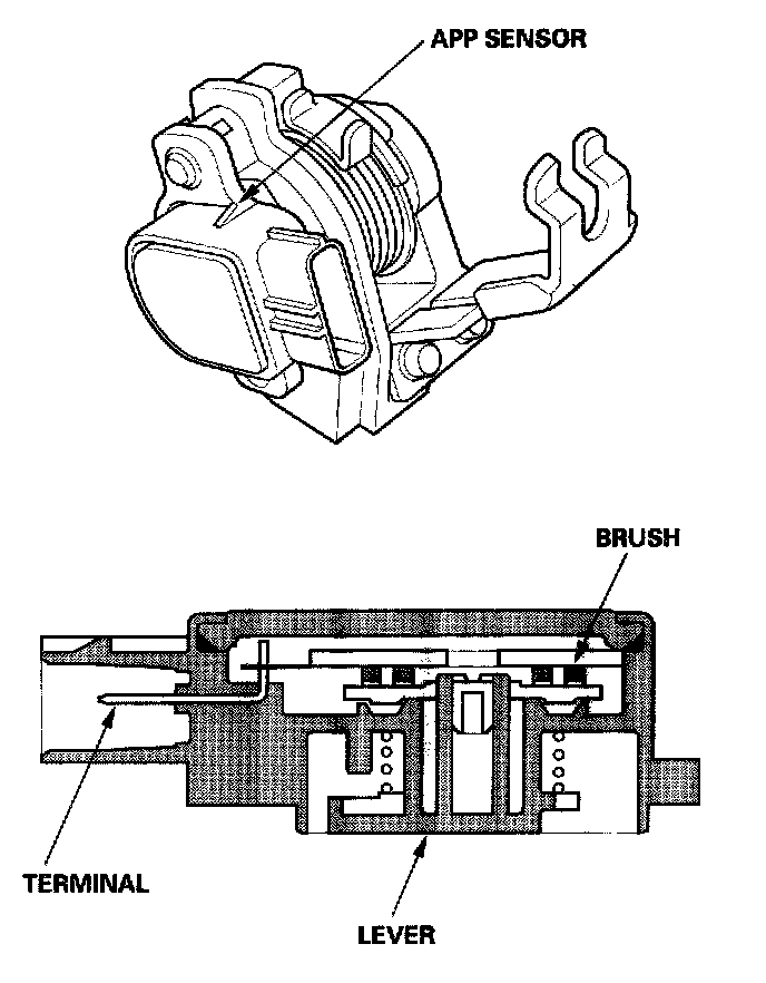 As the accelerator pedal position changes, the sensor varies the signal voltage to the ECM.