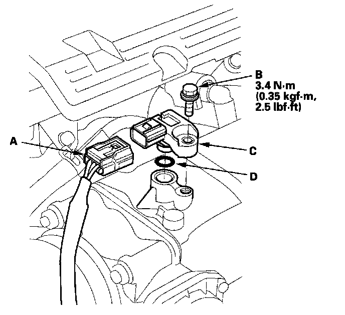 4. Install the sensor in the reverse order of removal with a new O-ring (D).