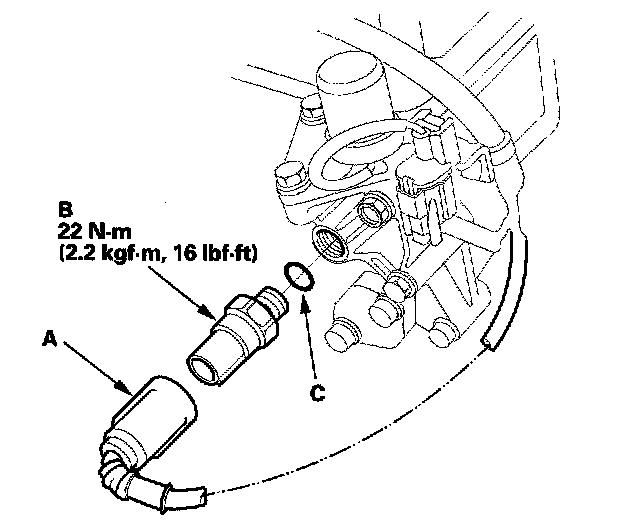 3. Install the rocker arm oil pressure switch (VTEC oil pressure switch) in the reverse order of removal with a new O-ring (C).