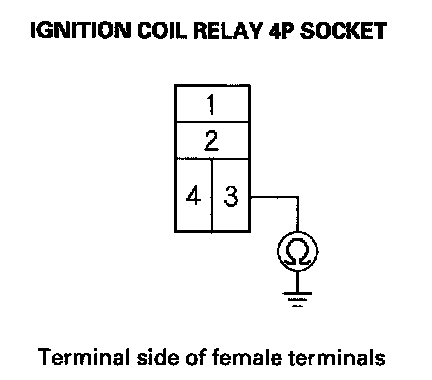 11. Check for continuity between ignition coil relay 4P socket terminal No. 3 and body ground.