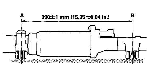 3. Adjust the distance between the bracket mounting bolt hole (A) and the gearbox mounting bolt hole (B) to the dimension shown. Make sure the bracket mounting bolt holes are parallel with gearbox mounting bolt holes.