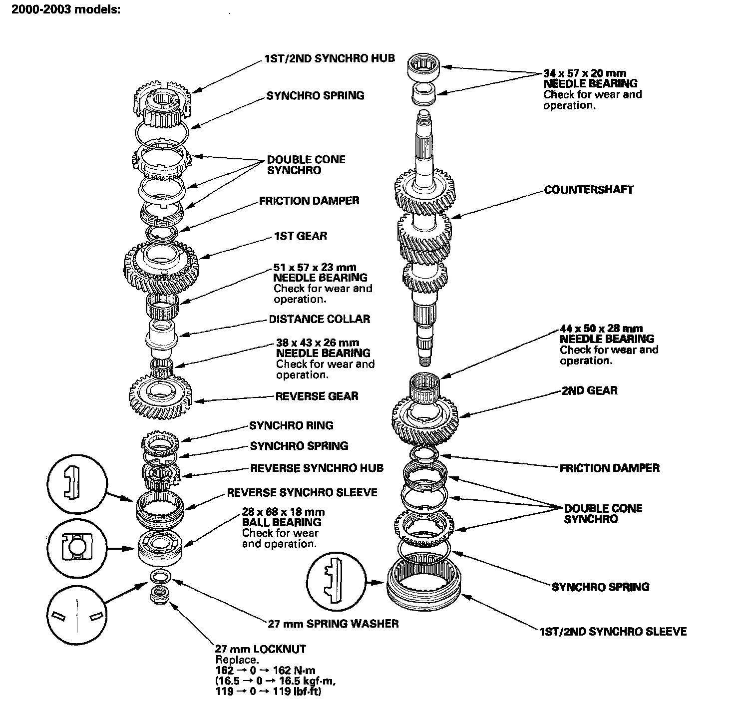Countershaft ReassemblyCountershaft 2000-2003 models: