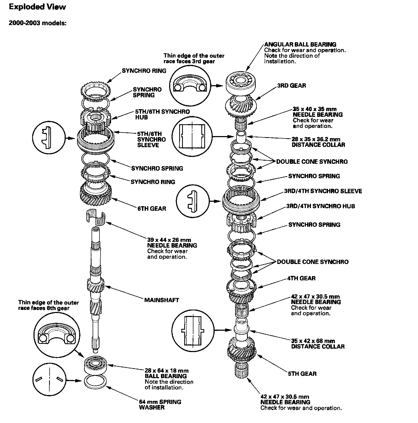 NOTE: The thin edge of the outer race faces 6th gear.