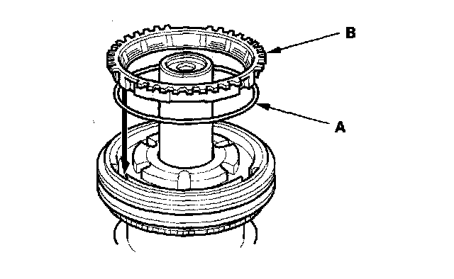 11. 2004-2006 models: Install the synchro spring (A) and synchro ring (B).