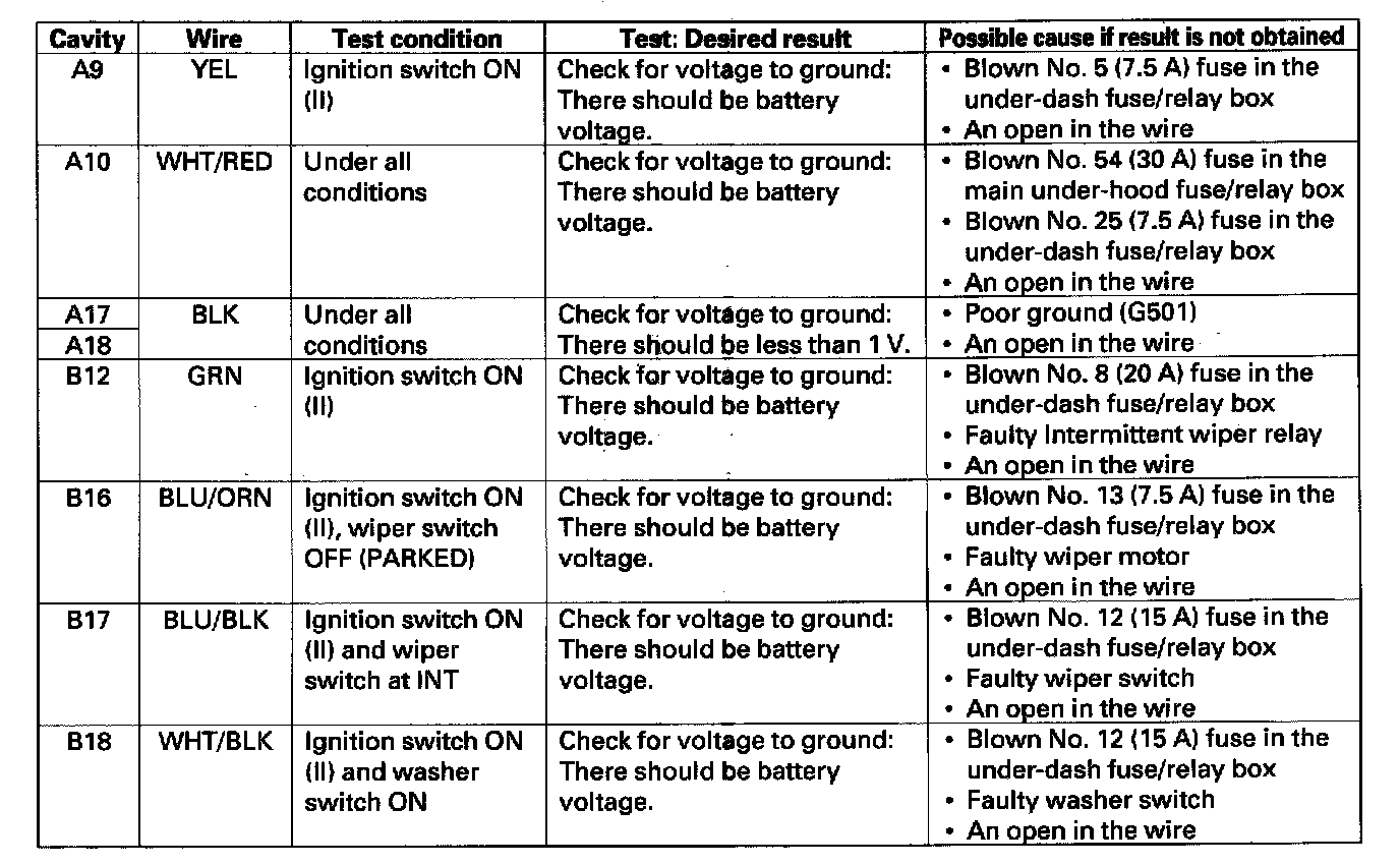 Intermittent Wiper Circuit Input Test'04-06 models