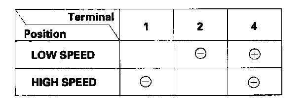 4. Test the motor by connecting battery power and ground according to the table. If the motor does not run or fails to run smoothly, replace it.