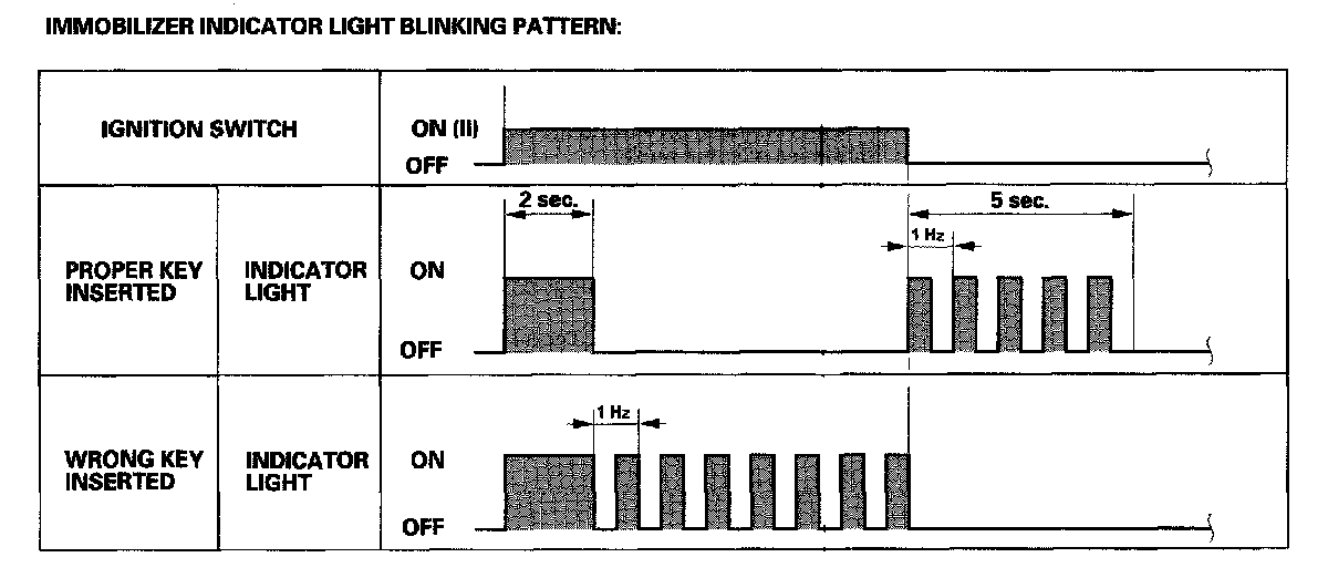 - If the wrong key has been used or the code was not received or recognized by the unit, the indicator light will come on for about 2 seconds, then it will blink until the ignition switch is turned OFF.