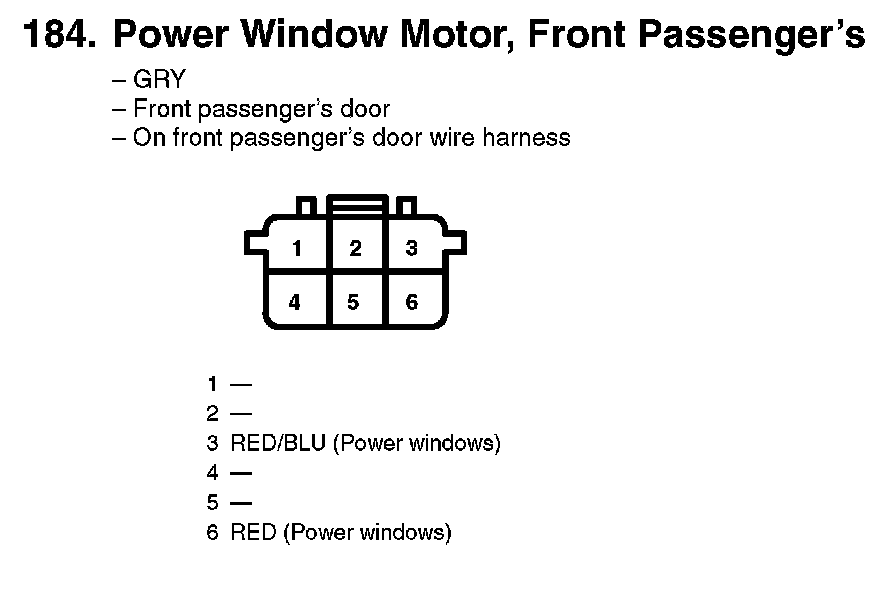 184. Power Window Motor, Front Passenger's: