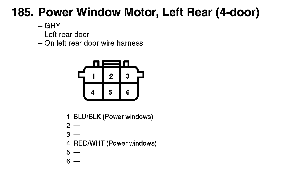 185. Power Window Motor, Left Rear (4-door):