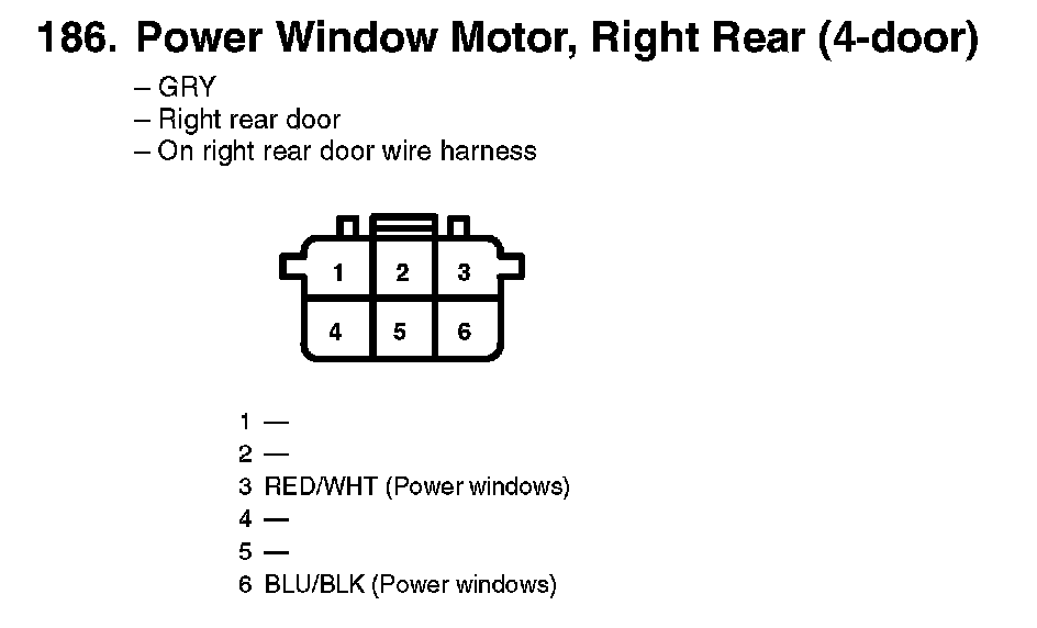186. Power Window Motor, Right Rear (4-door):