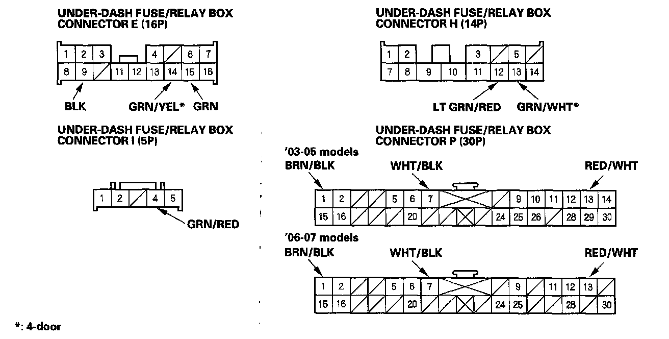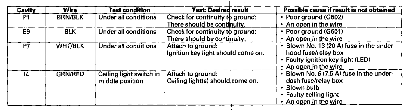 7. Turn the ignition switch to ON (II) to keep the system awake and make these input tests at the appropriate connectors on the under-dash fuse/relay box.