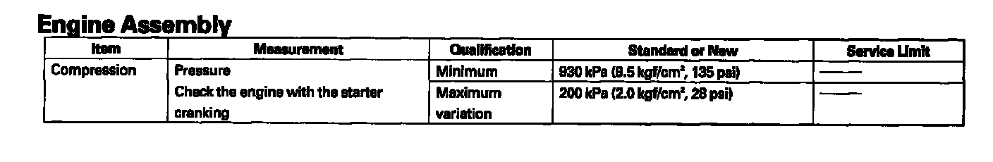 Compression Check: Specifications