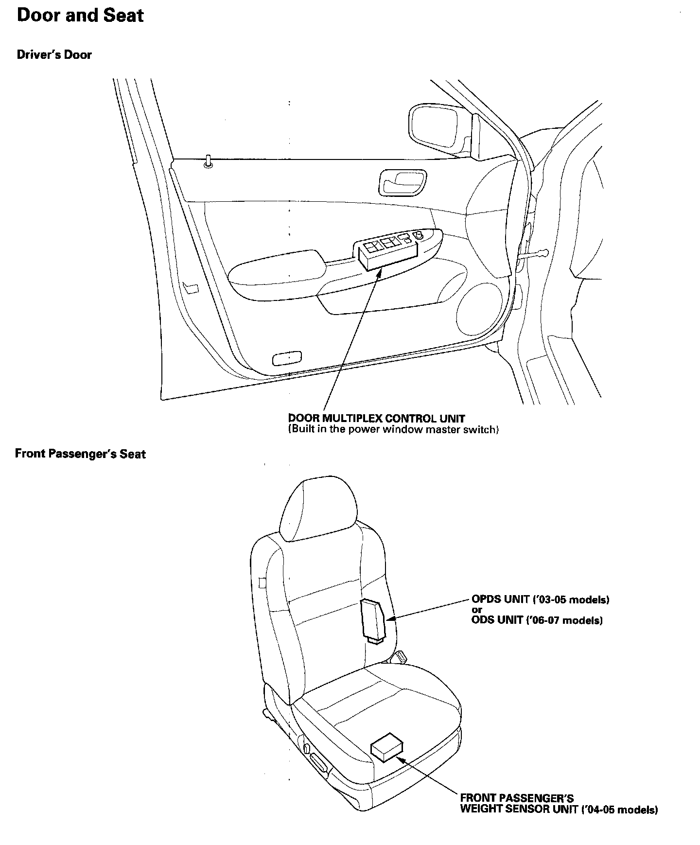 Relay And Control Unit Locations Door and Seat: