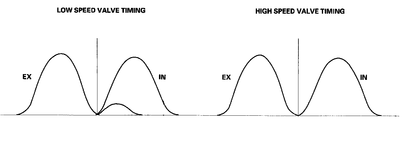 - Cam angle is advanced to obtain the EGR effect and reduce pumping loss. The intake valve is closed quickly to reduce the entry of the air/fuel mixture into the intake port and improve the charging effect.