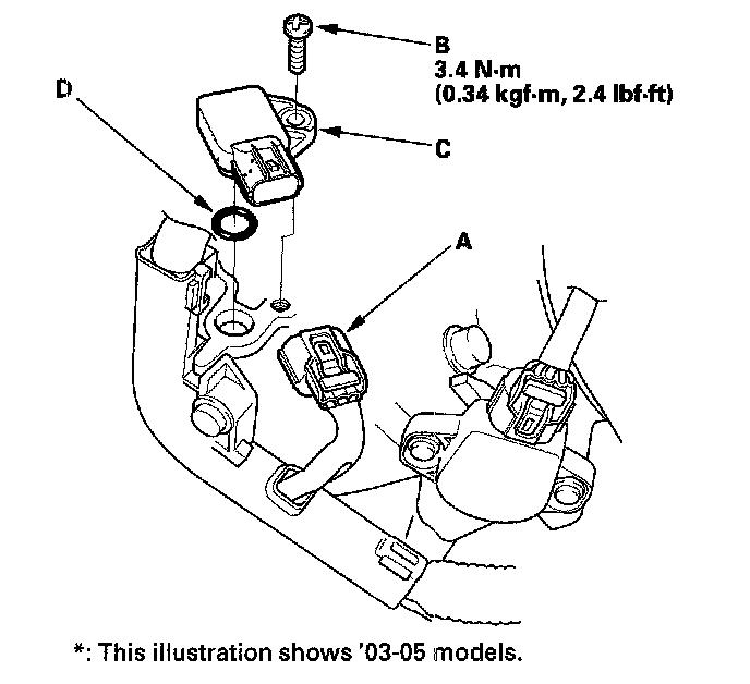 Install the parts in the reverse order of removal with a new O-ring (D).