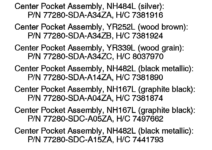 ^ If the lid opens and closes normally, install the center pocket assembly in reverse order of removal, and return the vehicle to the customer.