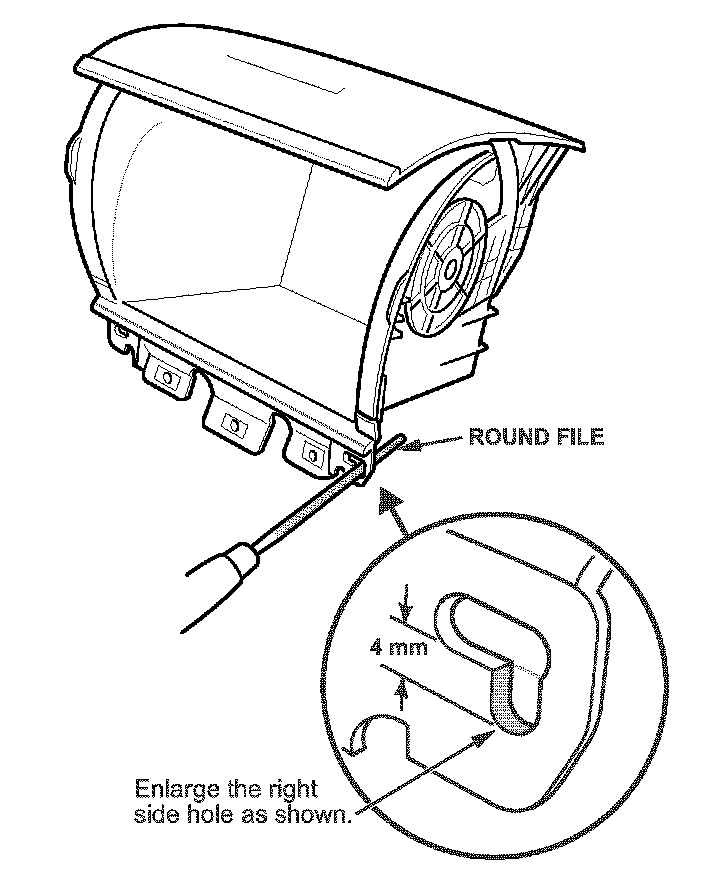 ^ Insert a 2.5-3.0 mm spacer between the pocket and the passenger's center lower cover.