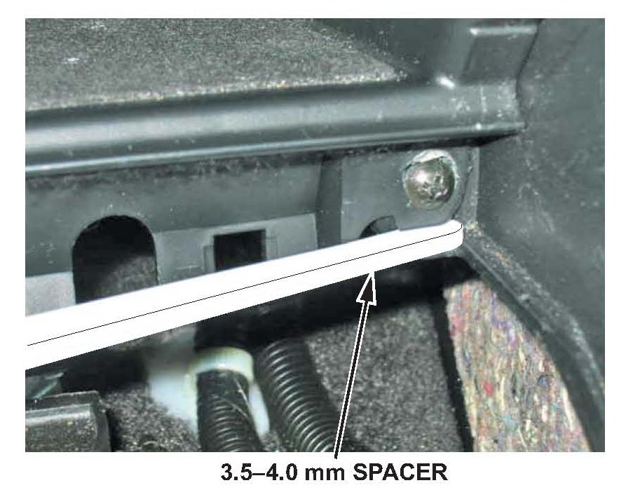 5. Make sure the center pocket lid no longer rubs against the dashboard. If it does, repeat step 4 using a 3.5-4.0 mm spacer.