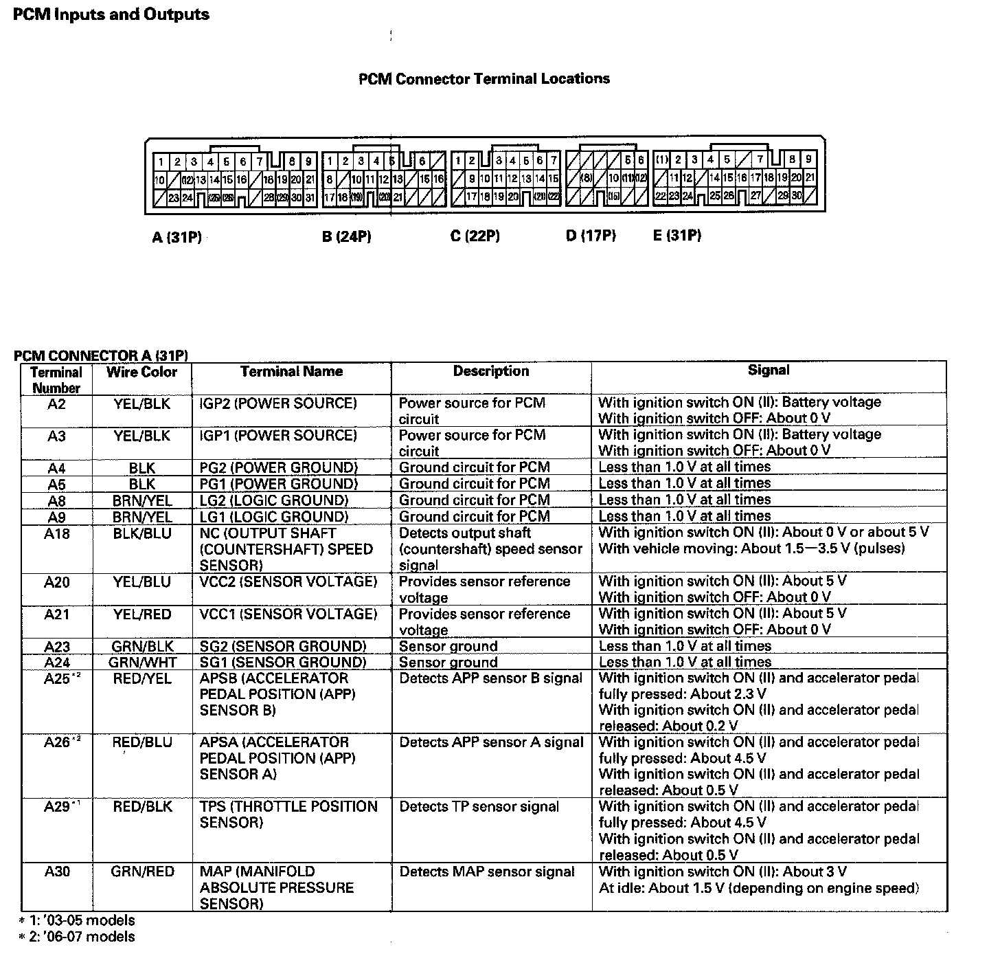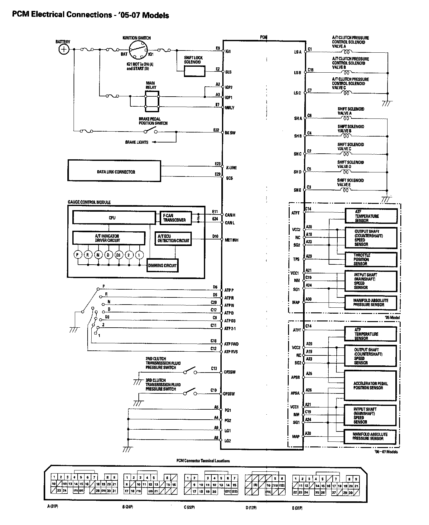 PCM Electrical Connections - 2005-2007 Models: