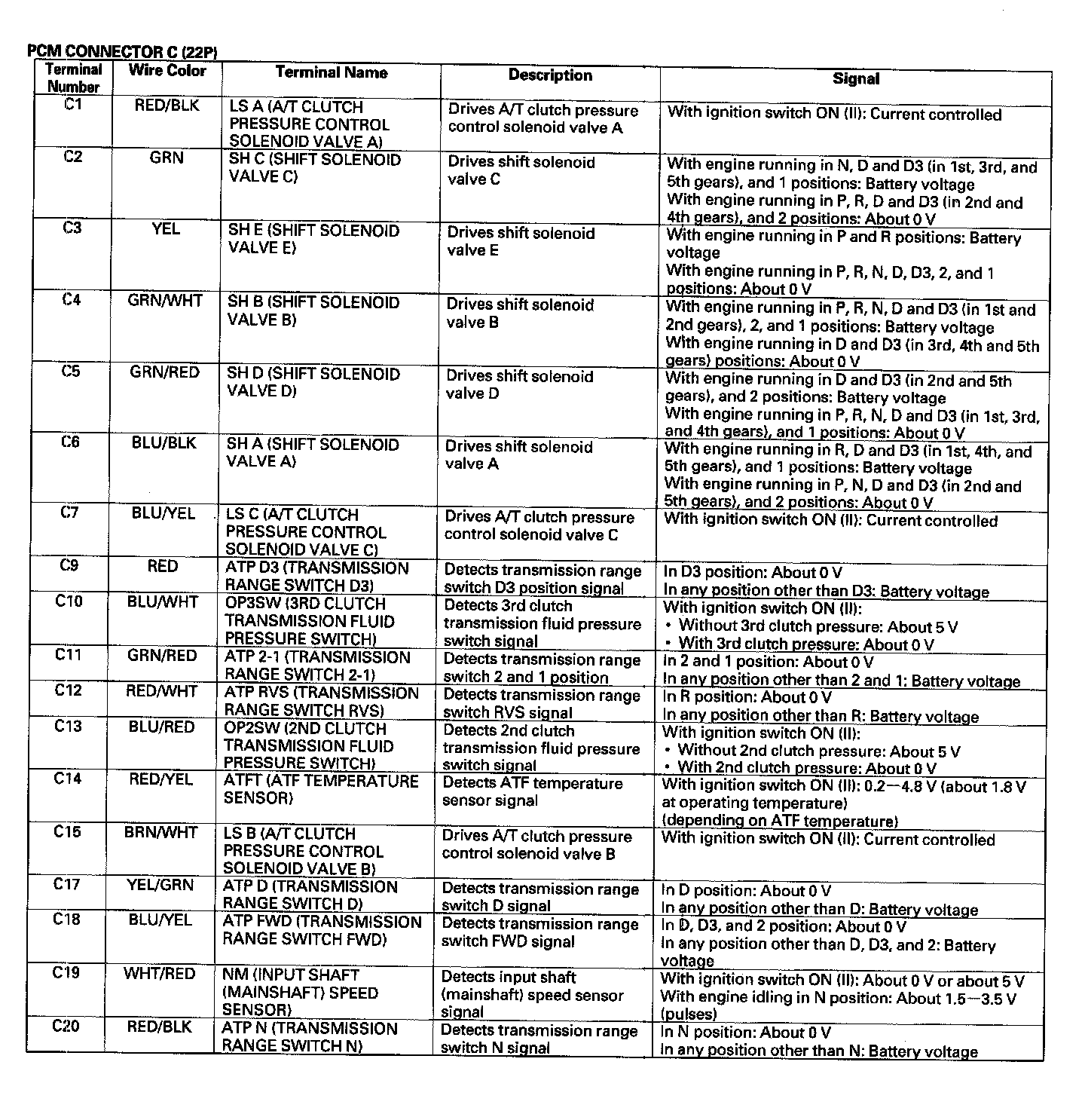 Pinout Values and Diagnostic Parameters
