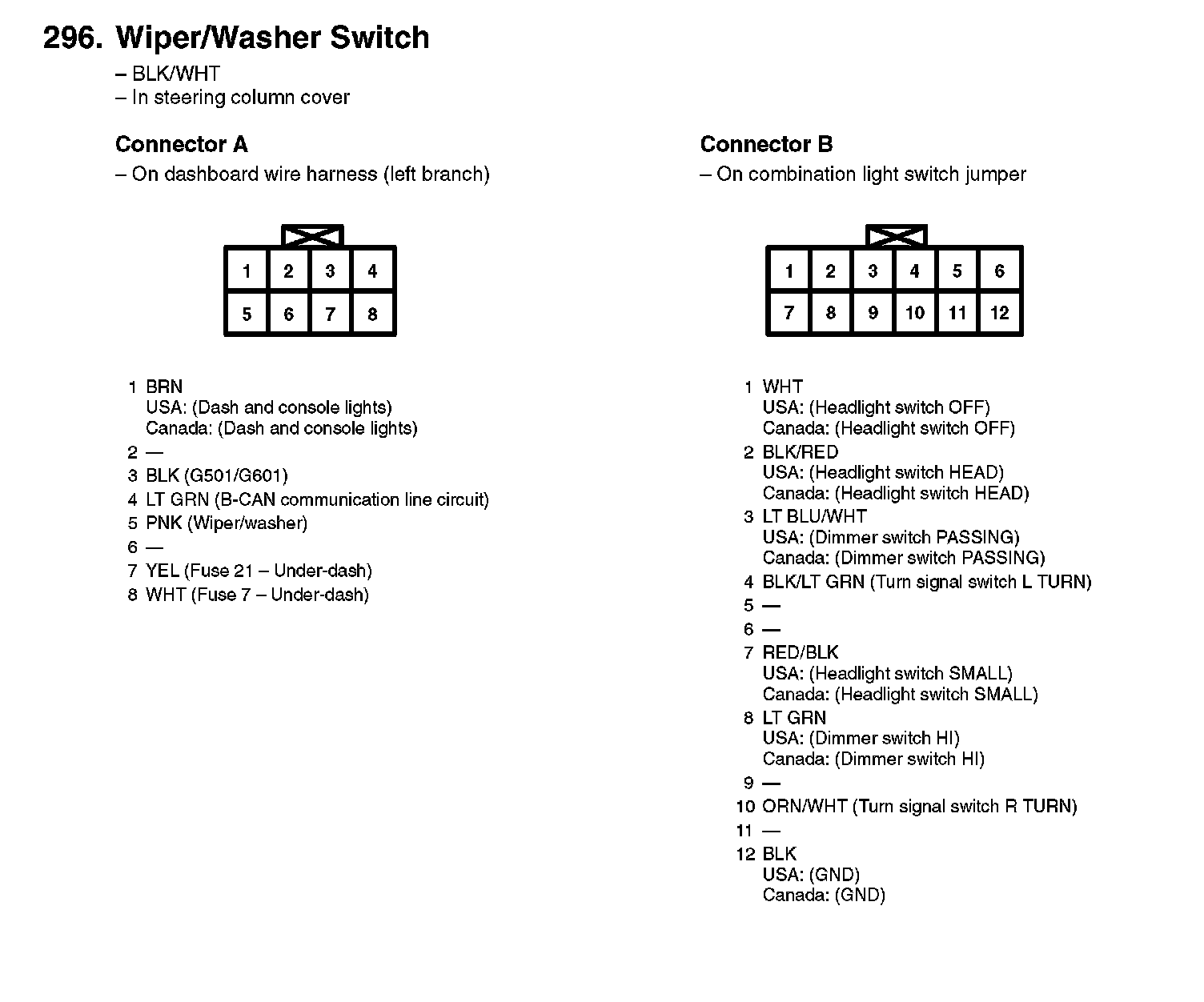 296. Wiper/Washer Switch: