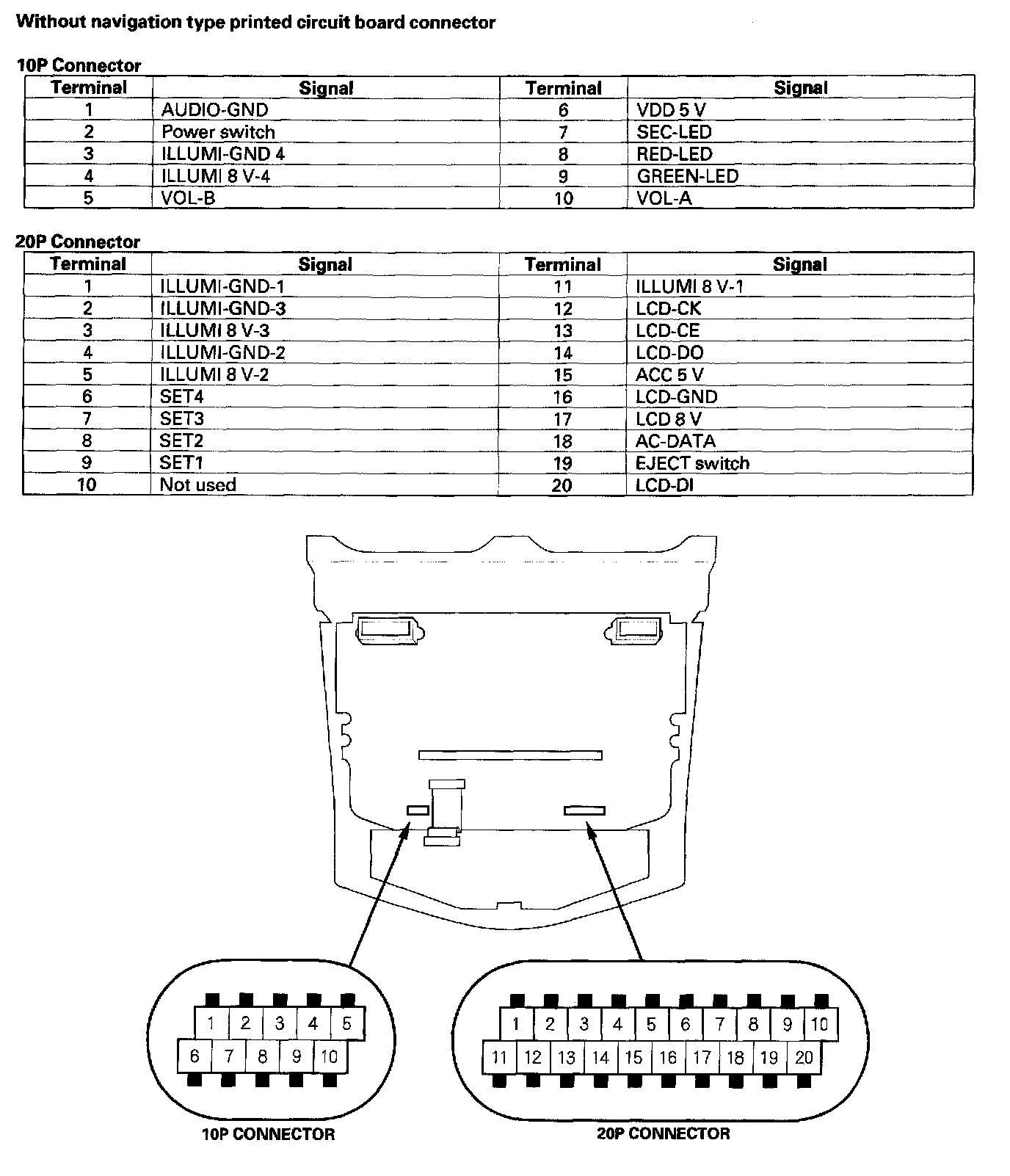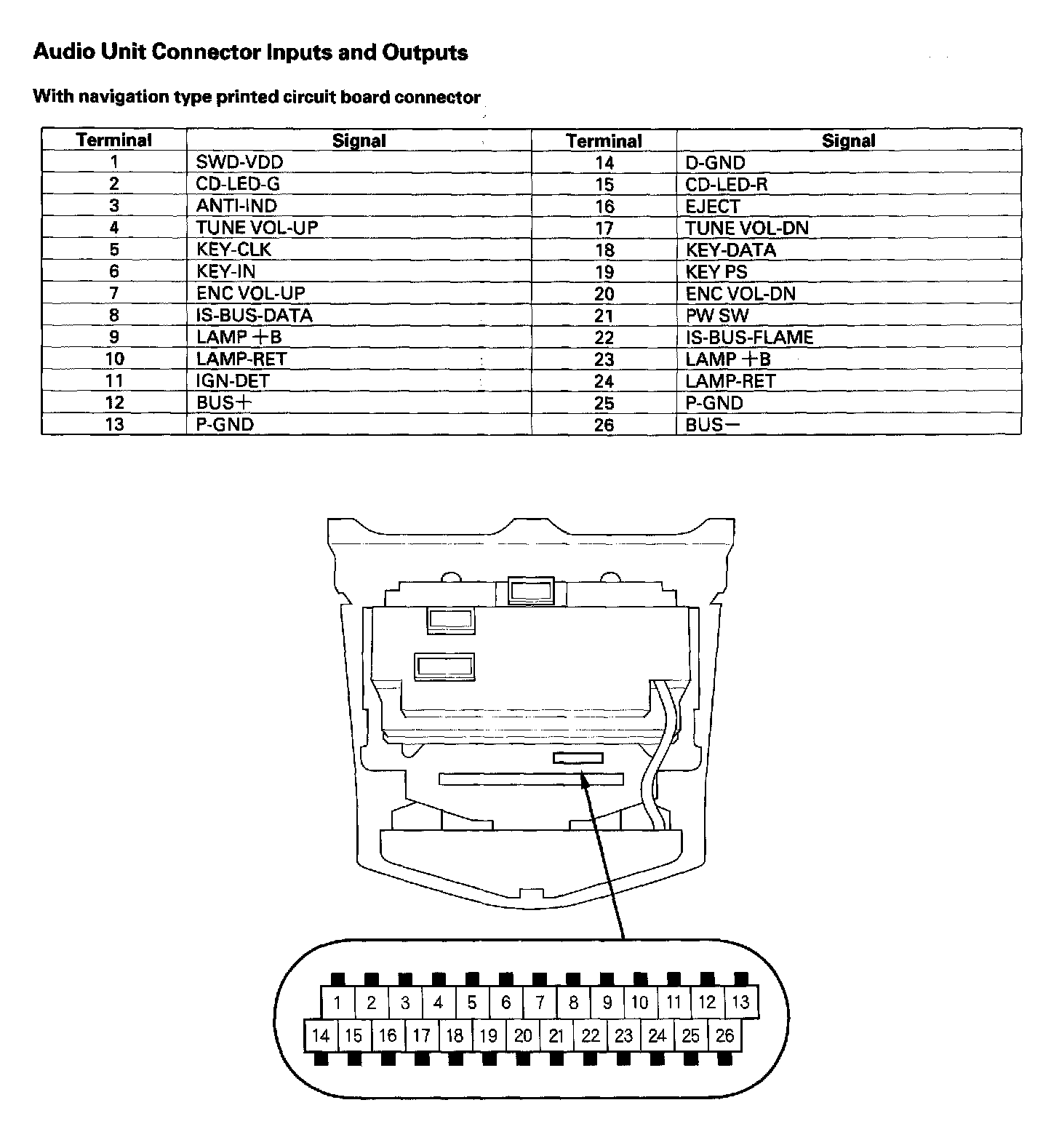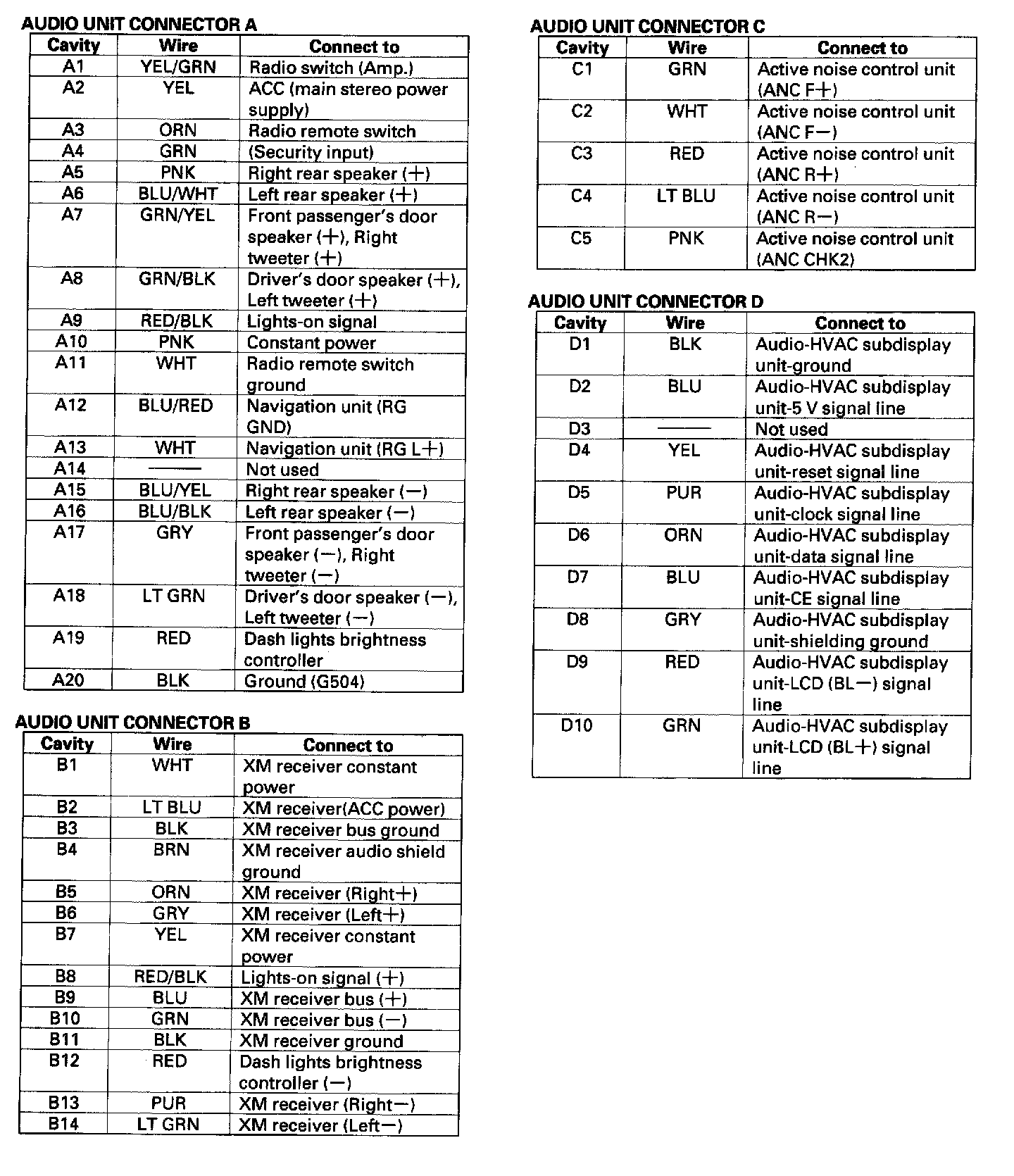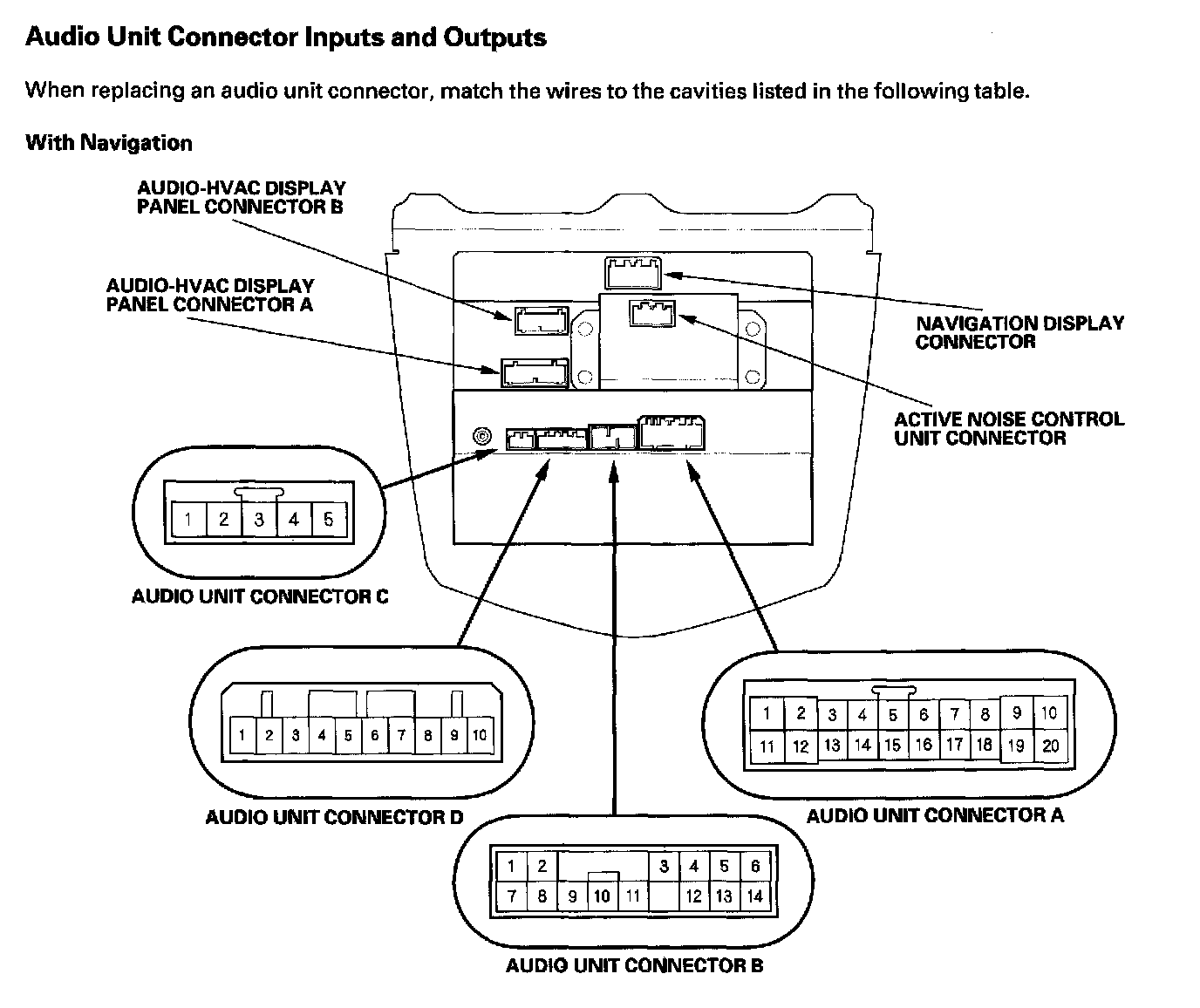 Audio-HVAC Subdisplay Unit Connector Inputs And Outputs: