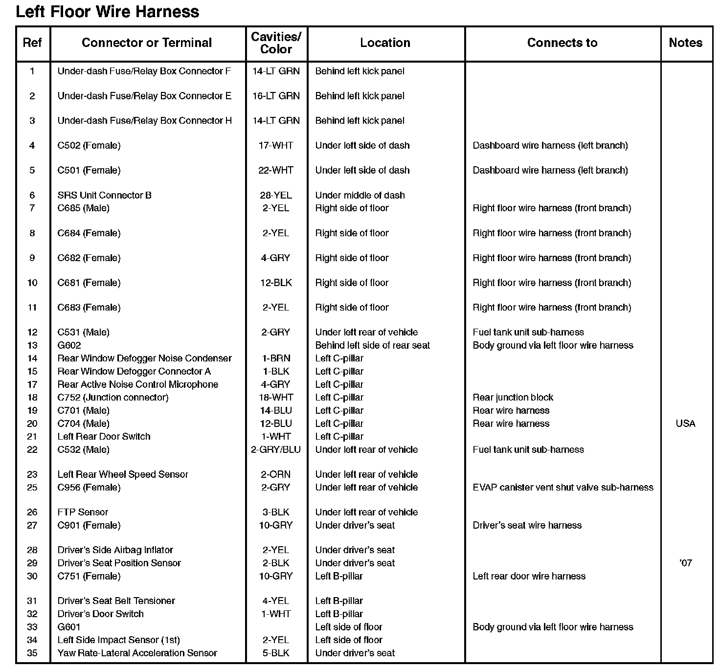 Left Floor Wire Harness:
