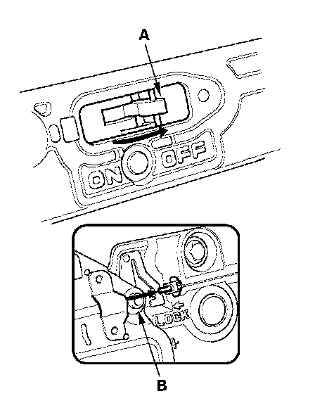 - Turn the battery module switch OFF, and secure it in the OFF position with the locking cover before you work on the IMA system.