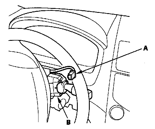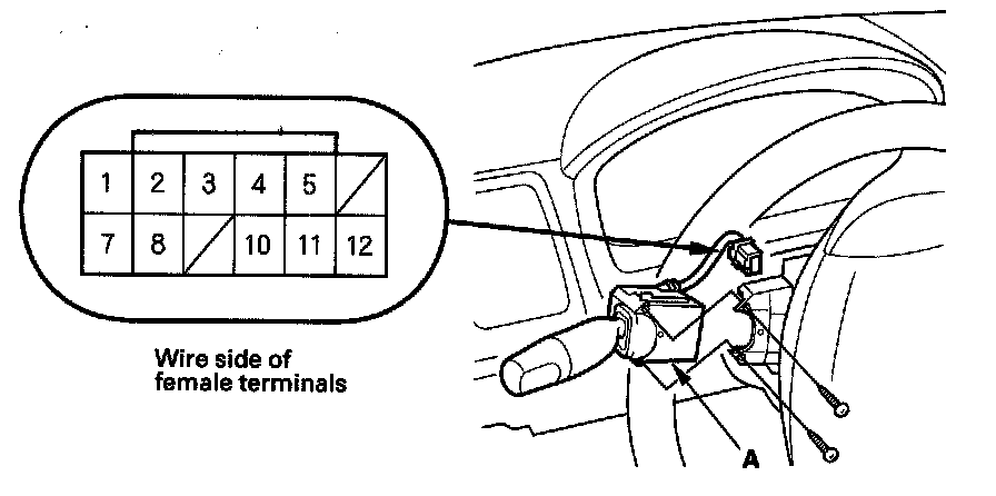 3. Disconnect the 12P connector (A) from the wiper/washer switch (B).